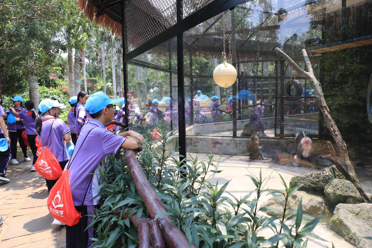 研学首站,学生们来到海南热带野生动植物园。在专业讲解员带领下,大家漫步热带雨林,近距离观察大熊猫、亚洲象、长颈鹿等珍稀动物,辨识热带珍稀植物,了解栖息习性与生态链关系。